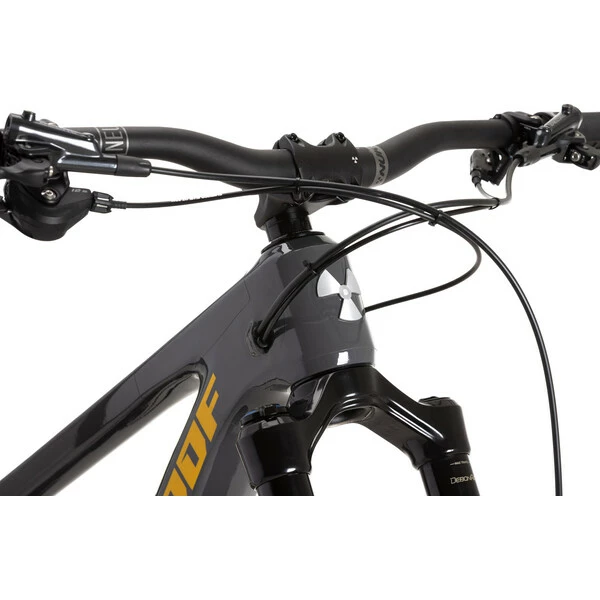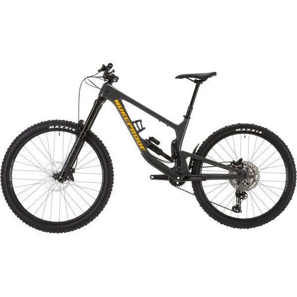 Du côté de l’équipement, Nukeproof a opté pour des composants efficaces et robustes. La transmission Shimano Deore 12 vitesses est très fiable. Les freins à disque hydrauliques à 4 pistons sont mordants et proposent deux disques de 203 mm pour contrôler parfaitement la vitesse dans toutes les conditions. La fourche avant RockShox Domain RC présente un débattement de 180mm et la suspension arrière RockShox Super Deluxe Select R, 180 mm pour un confort total. La tige de selle télescopique Brand-X Ascend permet d’adapter sa hauteur de selle pour un pilotage parfait. Enfin, les roues Sun-Ringle Duroc SD37 Comp chaussées de pneus Maxxis apportent une adhérence à toute épreuve.