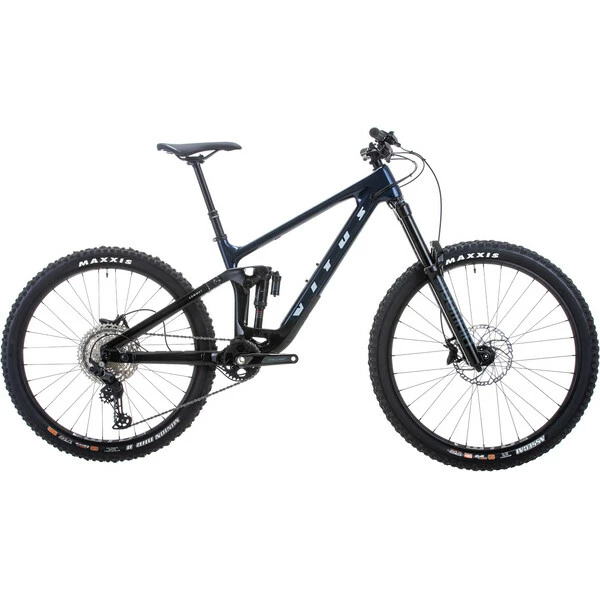Pour l’assemblage de ce VTT Vitus on retrouve une transmission Shimano Deore M6100 12 vitesses avec un anti-dérailleur, des suspensions Rockshox Domain RC et Super Deluxe Select R, une paire de frein à quatres pistons et des roues WTB KOM Trail i30 chaussées de pneus Maxxis.