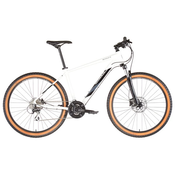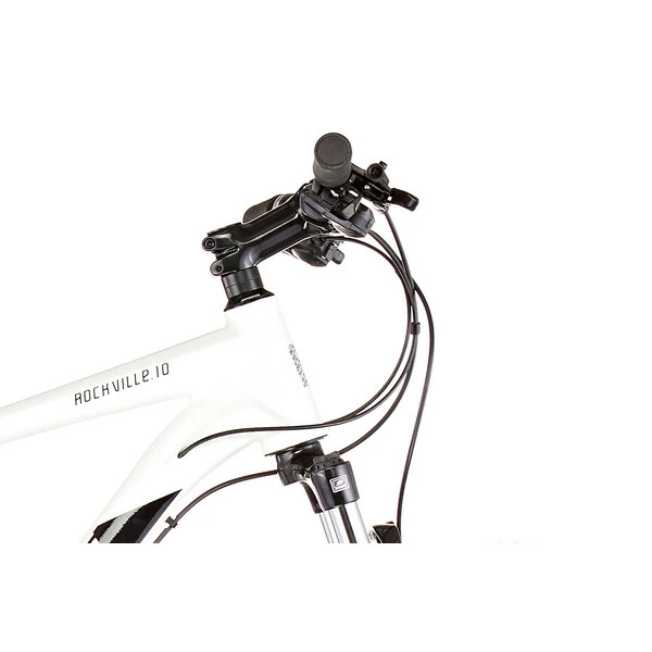 Il est doté d’un équipement fiable qui en fait un excellent VTT d’entrée de gamme, qui vous surprendra par sa polyvalence. Conçu autour d’un cadre en aluminium robuste, le Rockville reçoit ainsi une transmission Shimano Tourney 24 vitesses permettant d’envisager tous les profils de sorties, une fourche suspendue Suntour de 80 mm de débattement parfaite pour absorber efficacement les petits chocs, et un système de freinage à disque hydraulique puissant et constant.