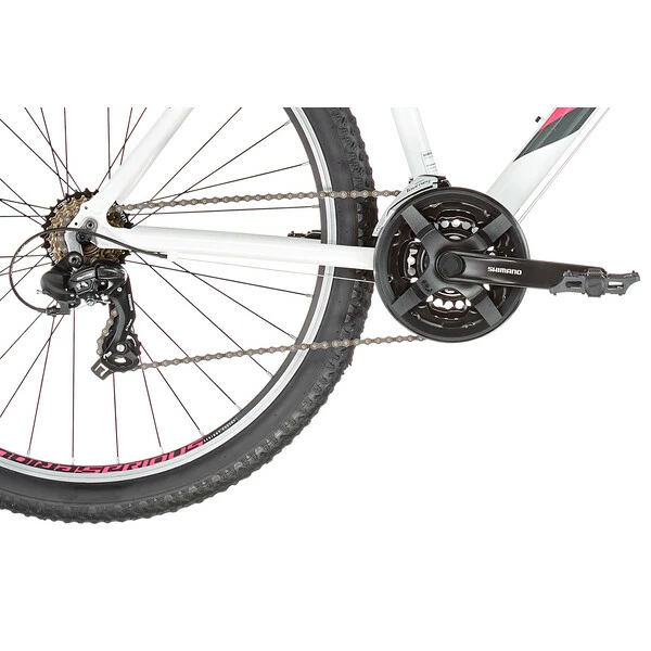 Il est doté d’un équipement fiable qui en fait un excellent VTT d’entrée de gamme, qui vous surprendra par sa polyvalence. Conçu autour d’un cadre en aluminium robuste, le Rockville reçoit ainsi une transmission Shimano Tourney 21 vitesses permettant d’envisager tous les profils de sorties, une fourche suspendue de 60 mm de débattement parfaite pour absorber efficacement les petits chocs, et un système de freinage à patins efficace.
