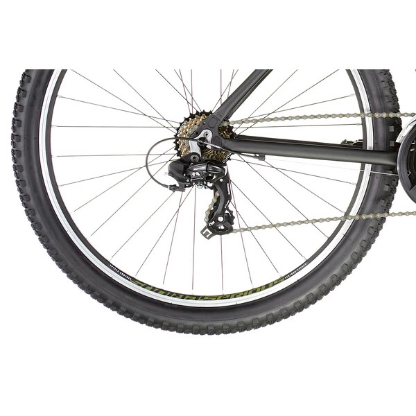 Il est doté d’un équipement fiable qui en fait un excellent VTT d’entrée de gamme surprenant par sa grande polyvalence. Conçu autour d’un cadre en aluminium robuste, le Rockville reçoit ainsi une transmission Shimano Tourney 21 vitesses permettant d’envisager tous les profils de sorties, une fourche suspendue de 60 mm de débattement parfaite pour absorber efficacement les petits chocs, et un système de freinage V-brake Alhonga mordant.