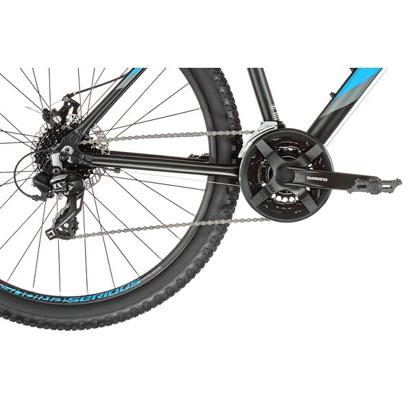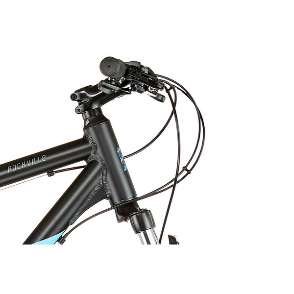 Il est doté d’un équipement fiable qui en fait un excellent VTT d’entrée de gamme, qui vous surprendra par sa polyvalence. Conçu autour d’un cadre en aluminium robuste, le Rockville reçoit ainsi une transmission Shimano Tourney 24 vitesses permettant d’envisager tous les profils de sorties, une fourche suspendue de 60 mm de débattement parfaite pour absorber efficacement les petits chocs, et un système de freinage à disque mécanique puissant et constant.