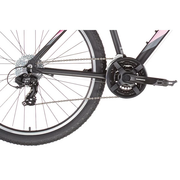 Il est doté d’un équipement fiable qui en fait un excellent VTT d’entrée de gamme surprenant par sa grande polyvalence. Conçu autour d’un cadre en aluminium robuste, le Rockville reçoit ainsi une transmission Shimano Tourney 21 vitesses permettant d’envisager tous les profils de sorties, une fourche suspendue de 60 mm de débattement parfaite pour absorber efficacement les petits chocs, et un système de freinage V-brake Alhonga mordant.
