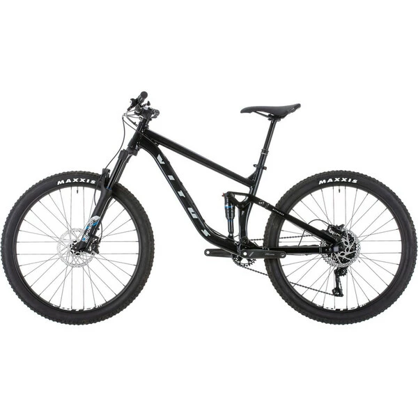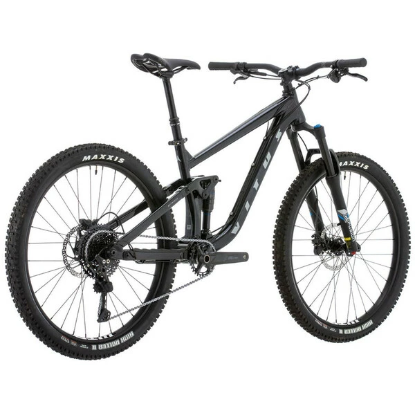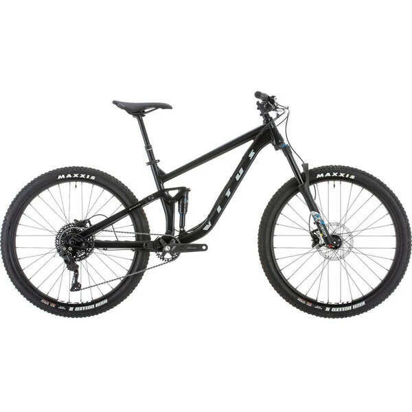 Pour l’assemblage de ce VTT Vitus on retrouve une transmission Shimano Deore 1×10 vitesses, des suspensions X-Fusion, une paire de freins à disques hydrauliques Shimano et des roues WTB ST i30 chaussées de pneus Maxxis.