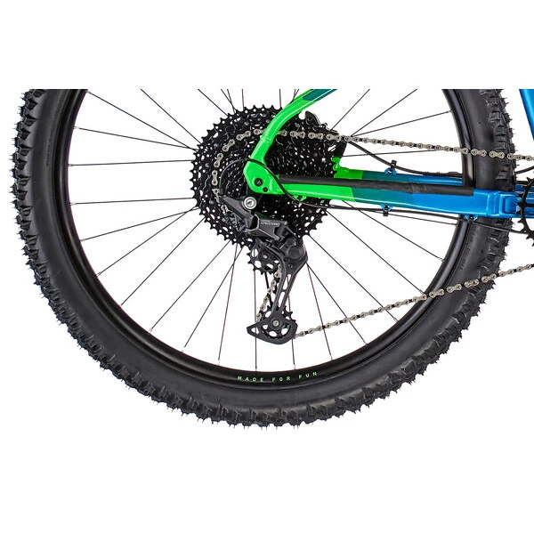 Le triangle supérieur incliné vous laisse un large dégagement pour les jambes, tandis que son angle de chasse ouvert (65°) et ses roues de 27,5″ avec pneus larges assurent confort, agilité et adhérencent sur les longues sorties.