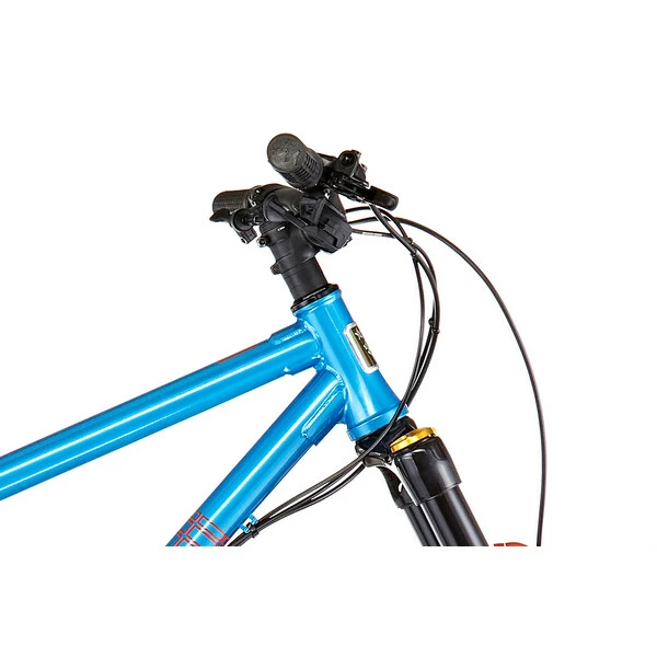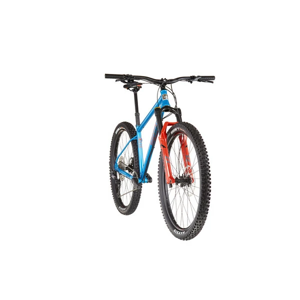 Sa géométrie est moderne et agressive avec son angle de chasse très ouvert (63°) comme sur un vélo de DH et ses roues de 29″ avec pneus larges assurent confort, vitesse et adhérence sur les sorties les plus techniques. Sa patte arrière assure la rigidité et la robustesse nécessaire à la pratique.