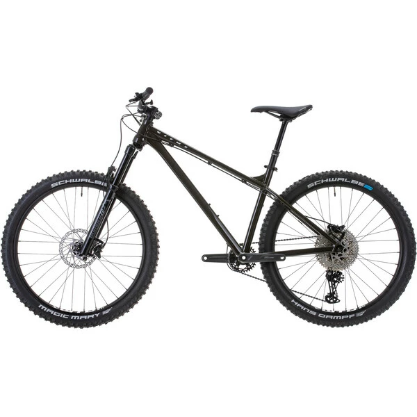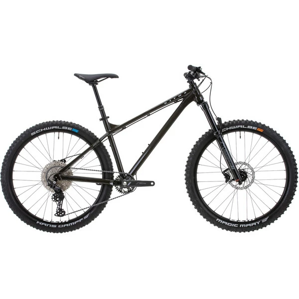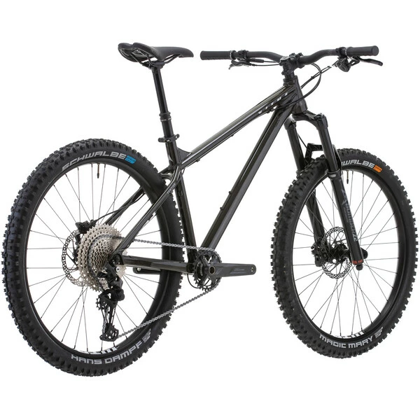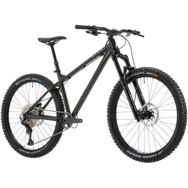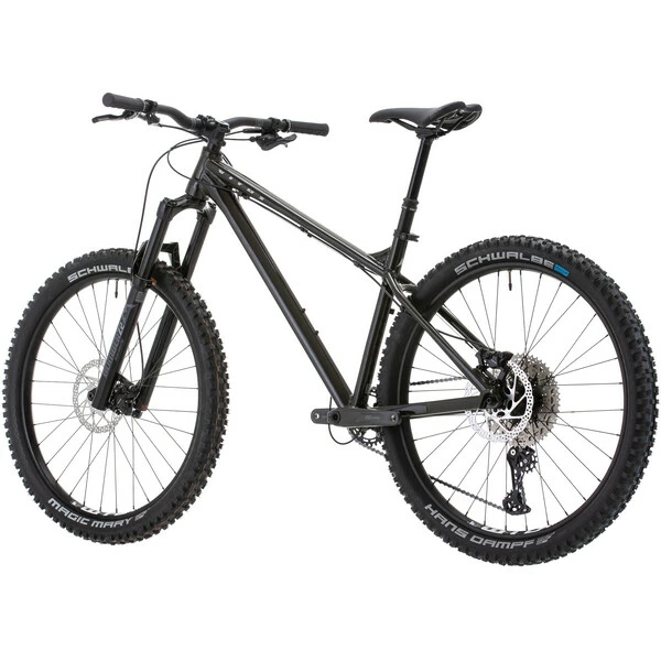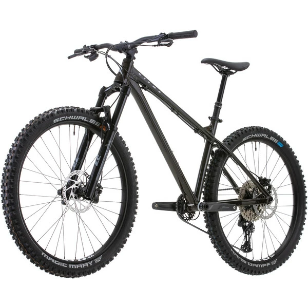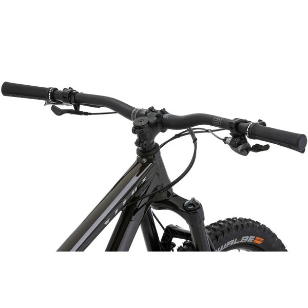 Pour l’assemblage de ce VTT Vitus, on retrouve une transmission Shimano Deore 1×11 vitesses, une suspension Marzocchi Bomber Z2 à air de 140 mm de débattement, une paire de frein à disques hydrauliques avec des disques de 180 mm et des roues WTB i30 TCS 2.0 chaussées de pneus Schwalbe à la section large pour le confort et la motricité.